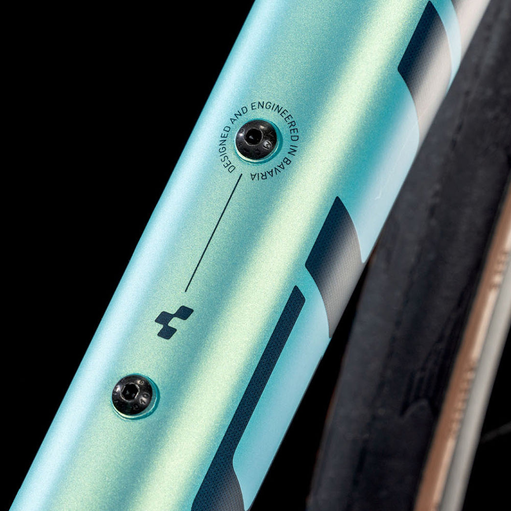 ¿Cómo llevar contigo lo esencial (por ejemplo, una cámara de aire de repuesto con palancas de neumáticos y un inflador de CO2) cuando sales a dar una vuelta o mientras entrenas? Con sus elegantes puntos de anclaje escondidos debajo del tubo horizontal, la Attain trae la respuesta de fábrica.